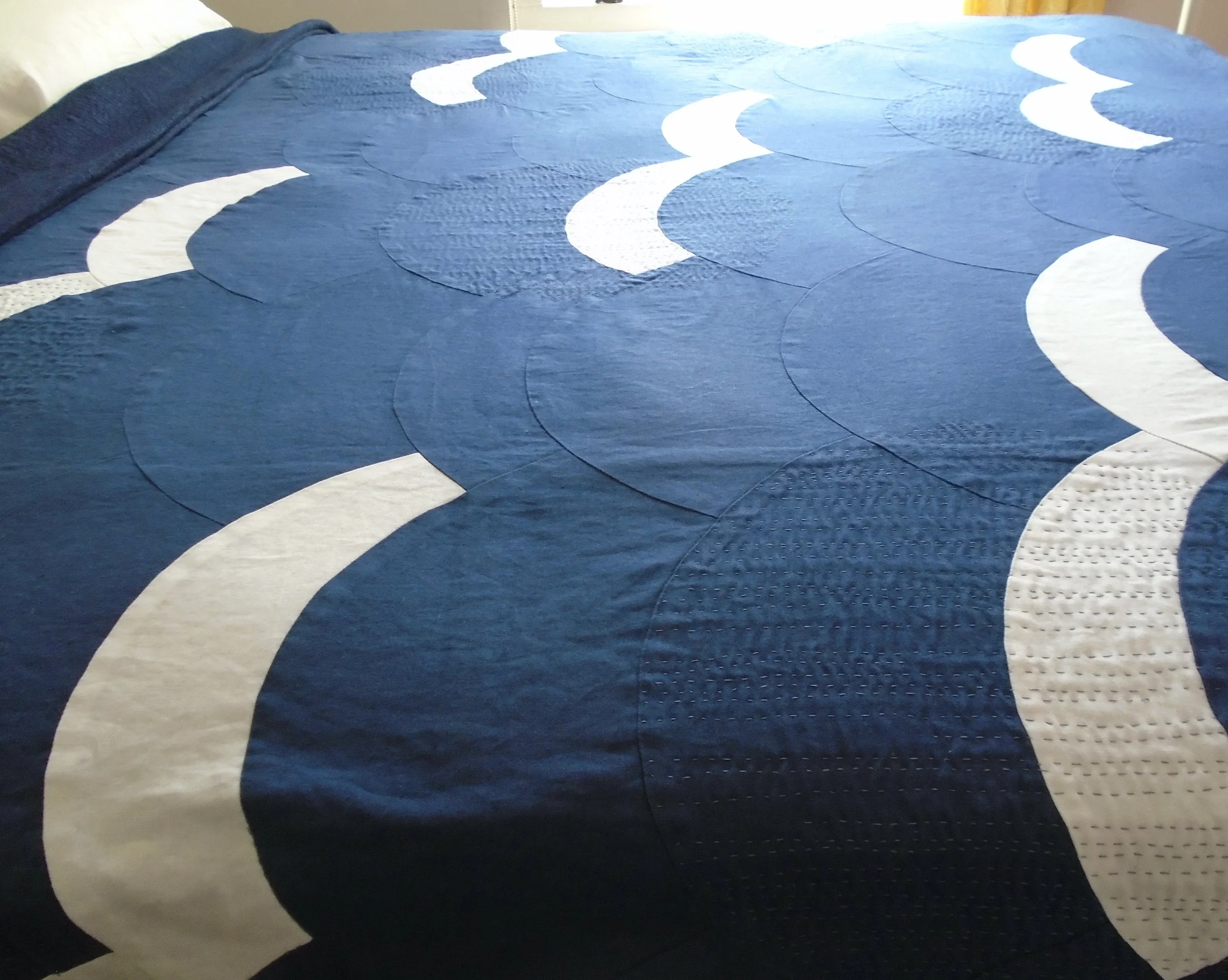 Front - hand dyed, soft linen/cotton blend. Back - hand dyed organic fleece. Hand quilting.