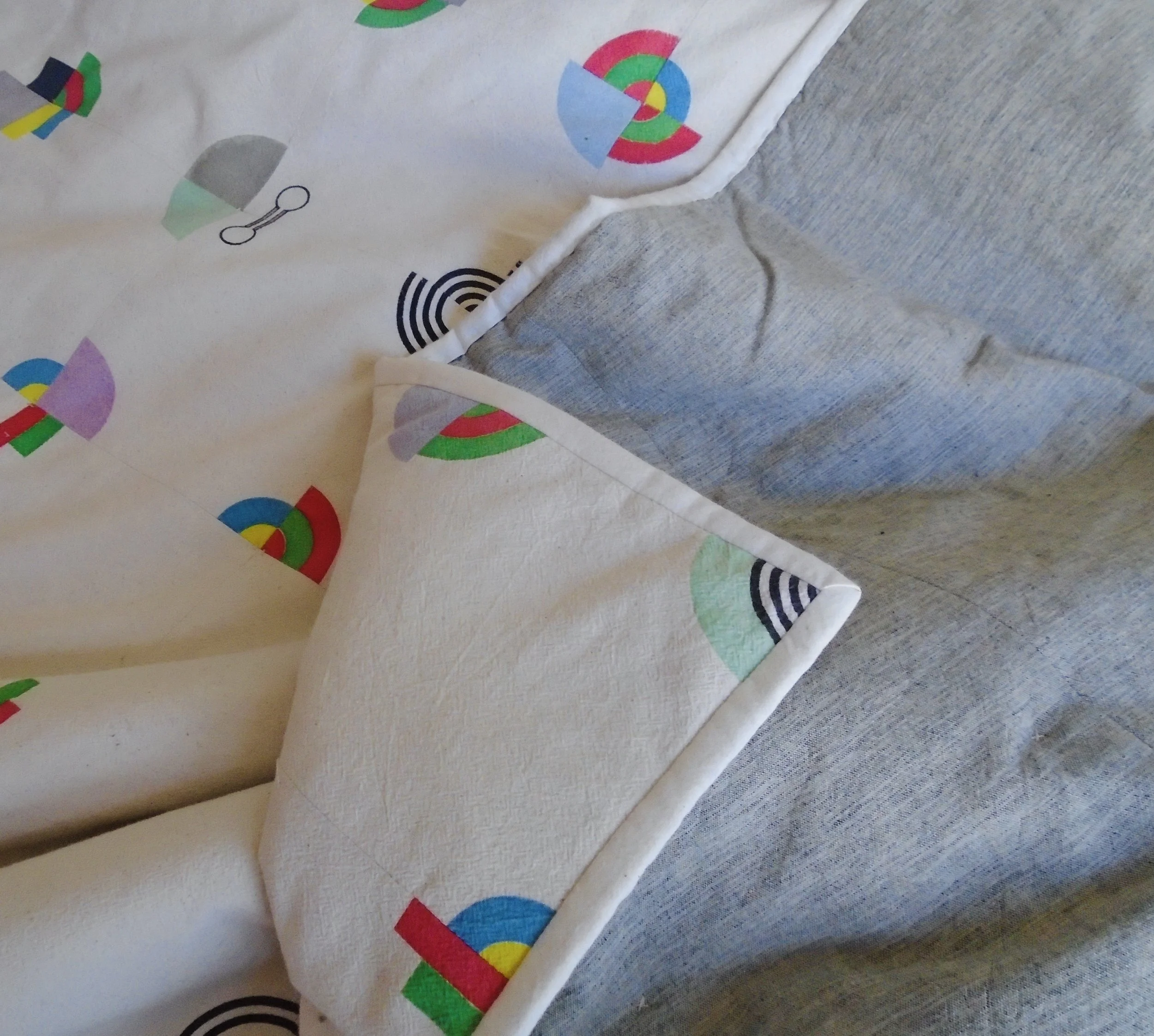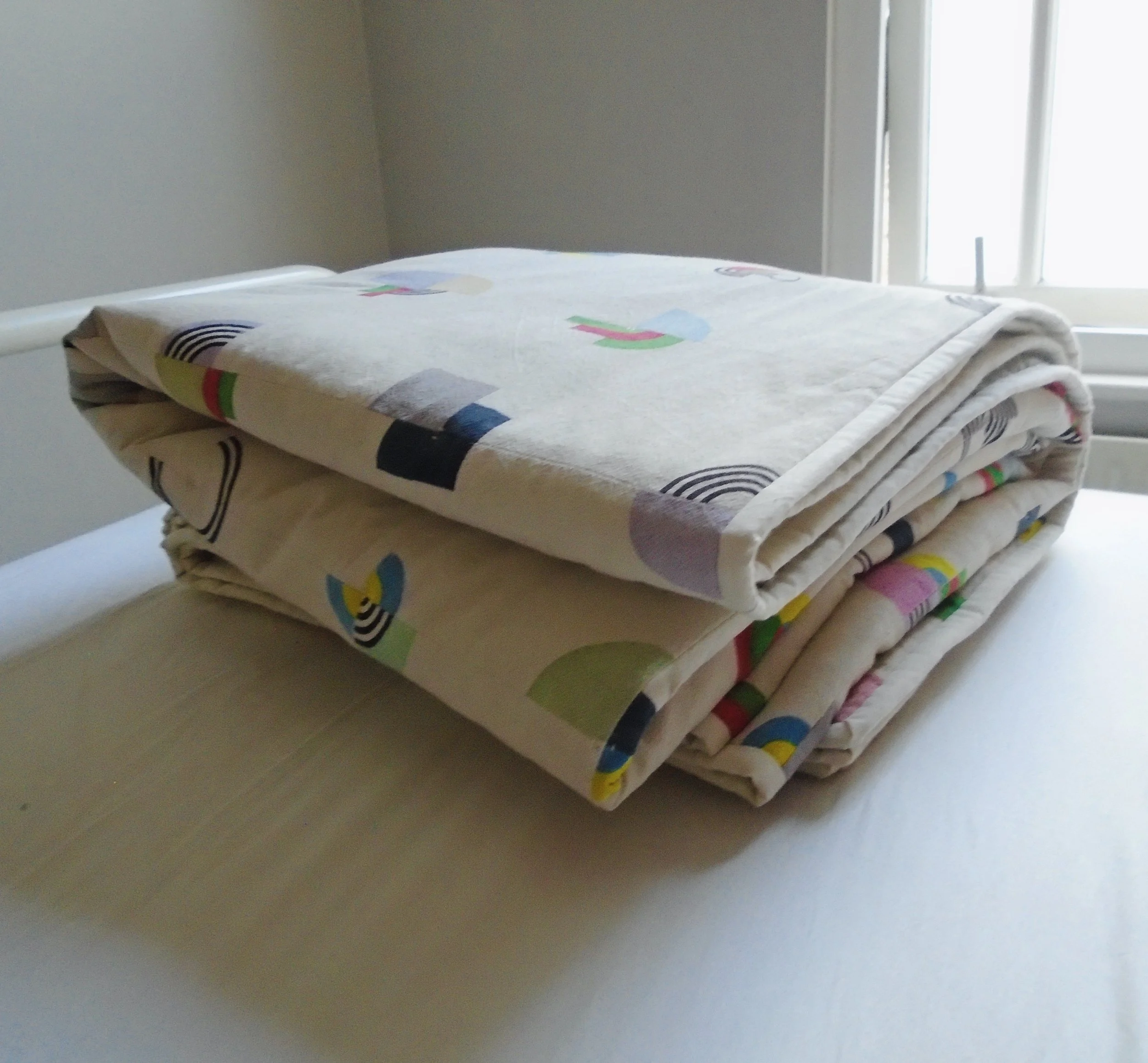 Front - screen printed organic calico. Back - organic cotton. Cotton wadding.